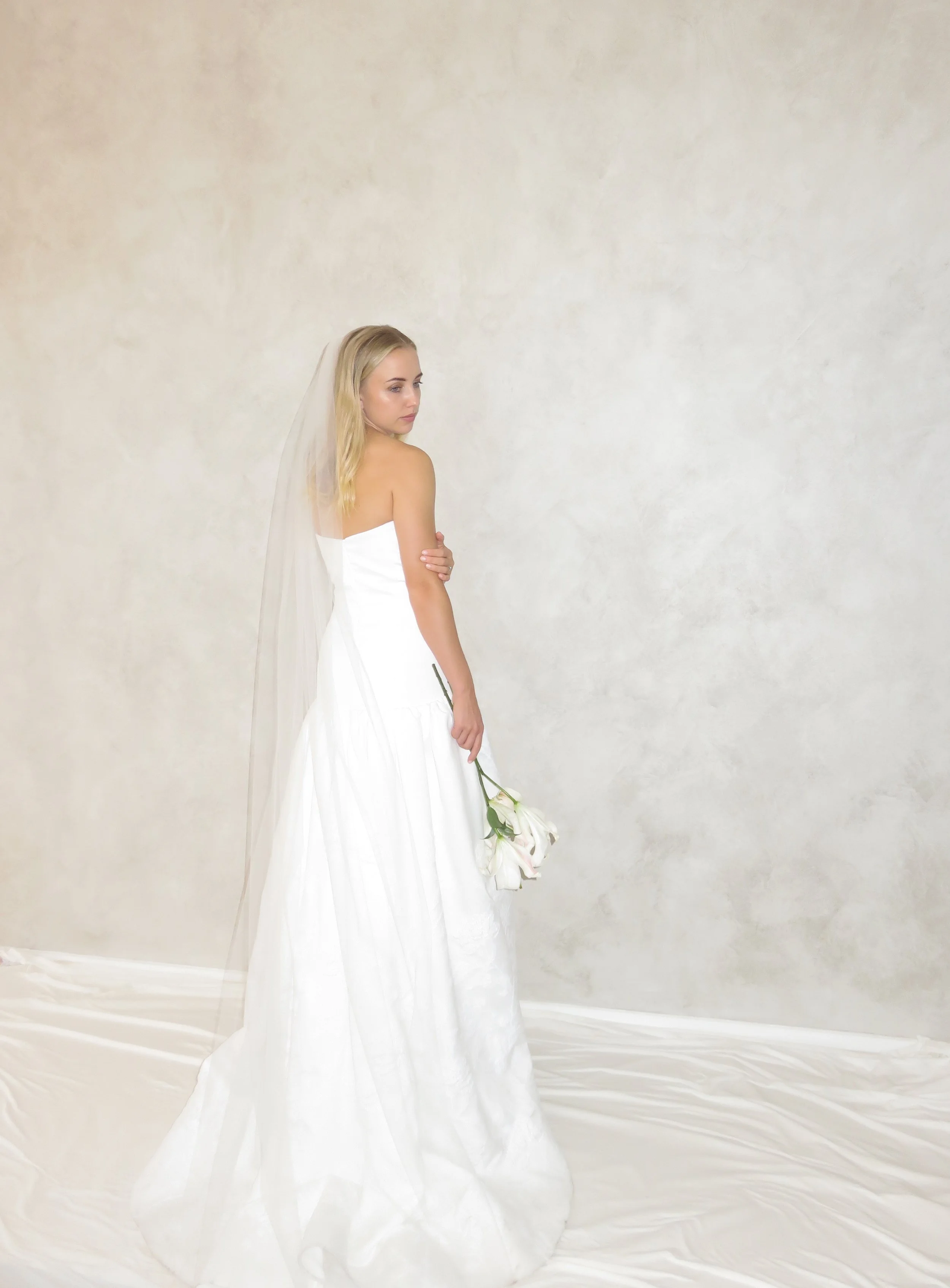 Our Demi Veil is the perfect accessory and adds the final touch to your wedding look. Narrower that our Classic Veil and made of a lightweight tulle, it is easy to wear and lets the details of your dress shine through